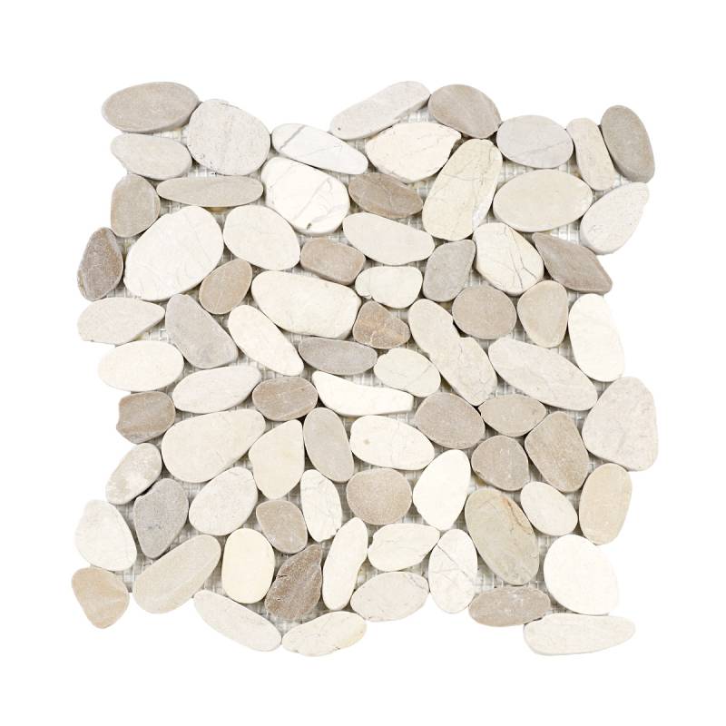 La mosaïque en galets FLAT0014 Mat Inter est une pièce de choix pour sublimer vos intérieurs et apporter un côté chaleureux aux espaces. Ses nuances ivoire et blanches s’harmonisent avec tous les styles intérieurs et illuminent l’atmosphère en douceur. Composée exclusivement de galets naturels fixés sur une trame en filet, elle décline la pierre sur les murs avec authenticité. Optez pour cette mosaïque pour un effet minéral réaliste qui créera des jeux de textures singuliers. Dans une douche à l’italienne ou dans une salle de bain, elle est le reflet d’une décoration affirmée et élégante.